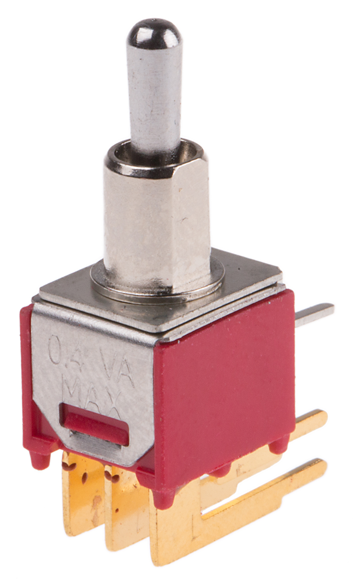 This is DPDT Toggle Switch (On)-Off-(On) PCB manufactured by RS Pro. The manufacturer part number is 448-0999. It features a 0.02ω contact resistance. The actuator is a 5.33mm long. The product is available in pcb configuration. The actuator is designed from sturdy brass material. Whereas, the minimum operating temperature of the product is -30°c. It has a maximum operating temperature of +85°c. The terminal is a through hole type. The product is made from sturdy gold over nickel plated brass materials.