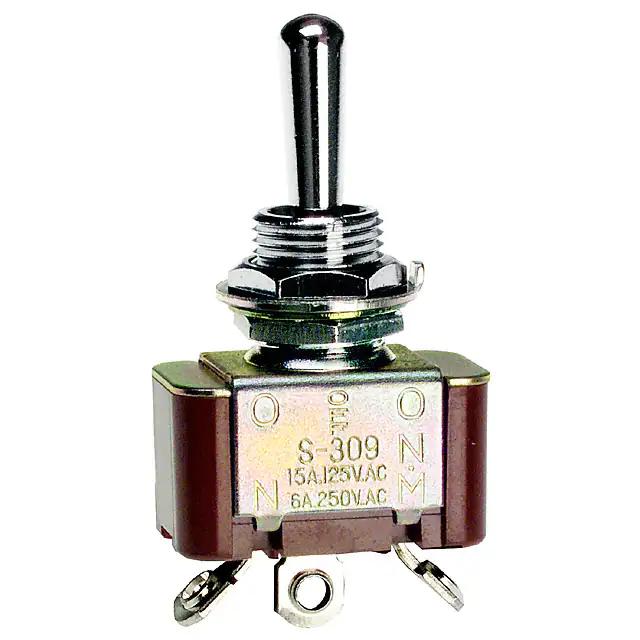 This is manufactured by NKK Switches. The manufacturer part number is S309. It features a 10mω contact resistance. The actuator is a 17.5mm long. The product is available in panel mount configuration. Moreover, the product has a nominal 30 v dc, 125v ac voltage rating. The actuator is designed from sturdy chrome plated brass material. Whereas, the minimum operating temperature of the product is -10°c. The product also provide mechanical stability with 50000operations. It has a maximum operating temperature of +70°c. The terminal is a solder type. It is assigned with possible HTSUS value of 8536.50.9065. The product is rohs3 compliant. The product offers long-lasting services of 25,000 cycles. Moreover, it has solder lug terminal style. 30 v of DC voltage rating. The product has -10°c ~ 70°c operating temperature range. It also has a circular - 12.50mm dia dimensional features. The actuator is a 17.50mm long. The product exhibits 125 v of AC voltage rating. In addition, it is reach unaffected. It is shipped in bulk. It is designed as a on-off-mom switching function. Its typical moisture sensitivity level is 1 (unlimited). It has an integral spdt circuit. It has a long 20 weeks standard lead time. Additionally, the product's output is 15a (ac), 20a (dc) The product s300, is a highly preferred choice for users. The product has bushing thread of m12 x 1. The product carries standard round actuator. Is this product illuminated? non-illuminated. The actuator is designed from sturdy brass, chrome plated material. The product is designated with the ear99 code number