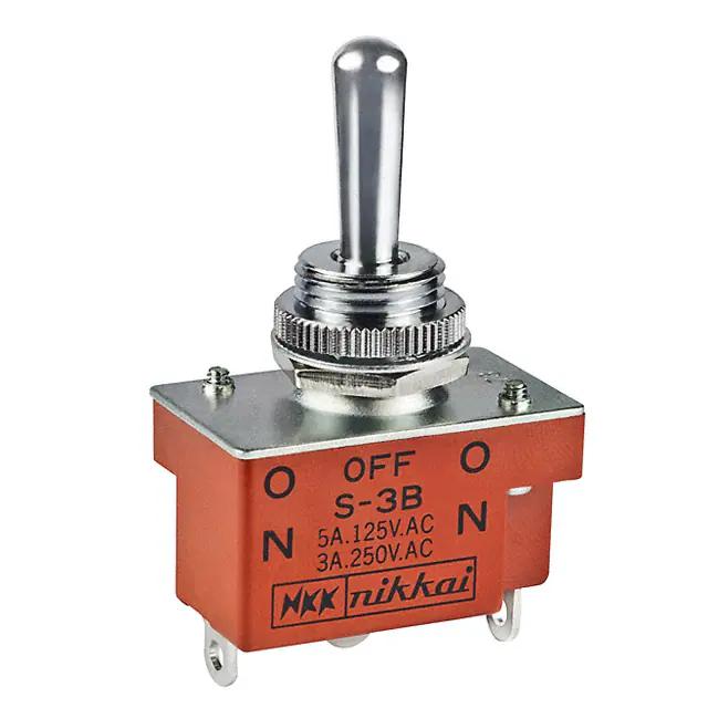This is manufactured by NKK Switches. The manufacturer part number is S3B. It is assigned with possible HTSUS value of 8536.50.9065. The product exhibits 125 v of AC voltage rating. The product offers long-lasting services of 25,000 cycles. Moreover, it has solder lug terminal style. 30 v of DC voltage rating. The product has -10°c ~ 70°c operating temperature range. It also has a circular - 12.50mm dia dimensional features. The actuator is a 17.50mm long. In addition, it is reach unaffected. It is shipped in bulk. It is designed as a on-off-on switching function. Its typical moisture sensitivity level is 1 (unlimited). It has an integral spdt circuit. Additionally, the product's output is 5a (ac/dc) The product is available in panel mount configuration. The product s, is a highly preferred choice for users. The product has bushing thread of m12 x 1. The product carries standard round actuator. Is this product illuminated? non-illuminated. The actuator is designed from sturdy brass, chrome plated material. The product is designated with the ear99 code number