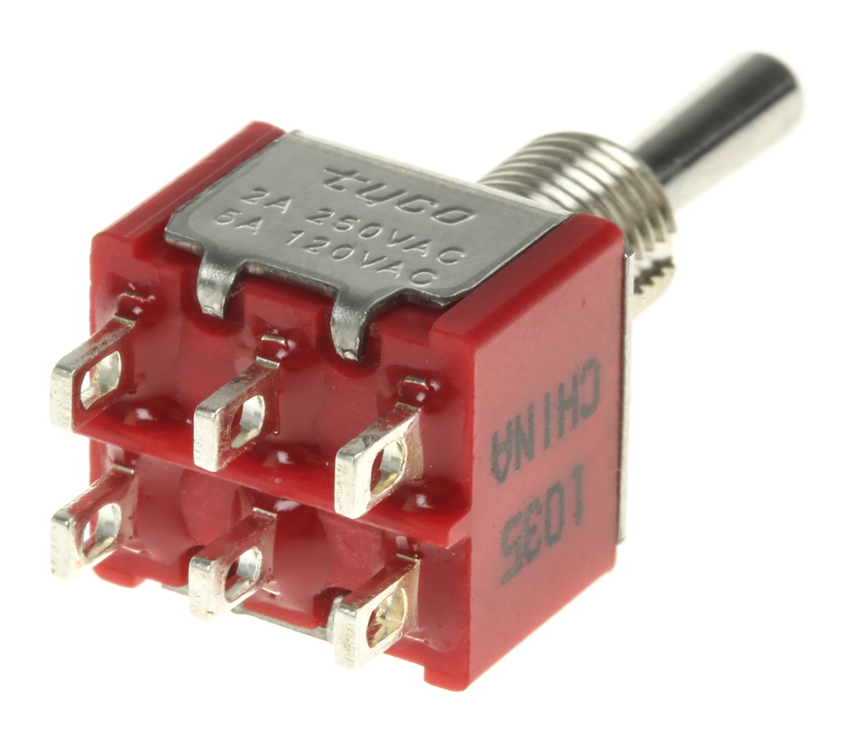 This is DP3T Toggle Switch (On)-On-(On) Panel Mount manufactured by TE Connectivity. The manufacturer part number is 4-1825139-5. It features a 10mω contact resistance. The actuator is a 10.41mm long. The product is available in panel mount configuration. Moreover, the product has a nominal 120 v ac, 28v dc voltage rating. The actuator is designed from sturdy phenolic material. Whereas, the minimum operating temperature of the product is -30°c. It has a maximum operating temperature of +85°c. The terminal is a wire lug type. The product is made from sturdy silver plated copper materials.