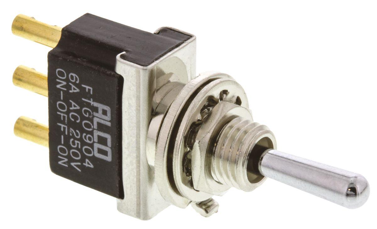 This is SPDT Toggle Switch (On)-Off-(On) Panel Mount manufactured by TE Connectivity. The manufacturer part number is FTG0904. It features a 0.01ω contact resistance. The actuator is a 10.5mm long. The product is available in panel mount configuration. Moreover, the product has a nominal 125 v ac, 250v ac voltage rating. The actuator is designed from sturdy chrome plated brass material. Whereas, the minimum operating temperature of the product is -20°c. The product also provide mechanical stability with 100000operations. It has a maximum operating temperature of +80°c. The terminal is a solder type. The product is made from sturdy gold plated materials.
