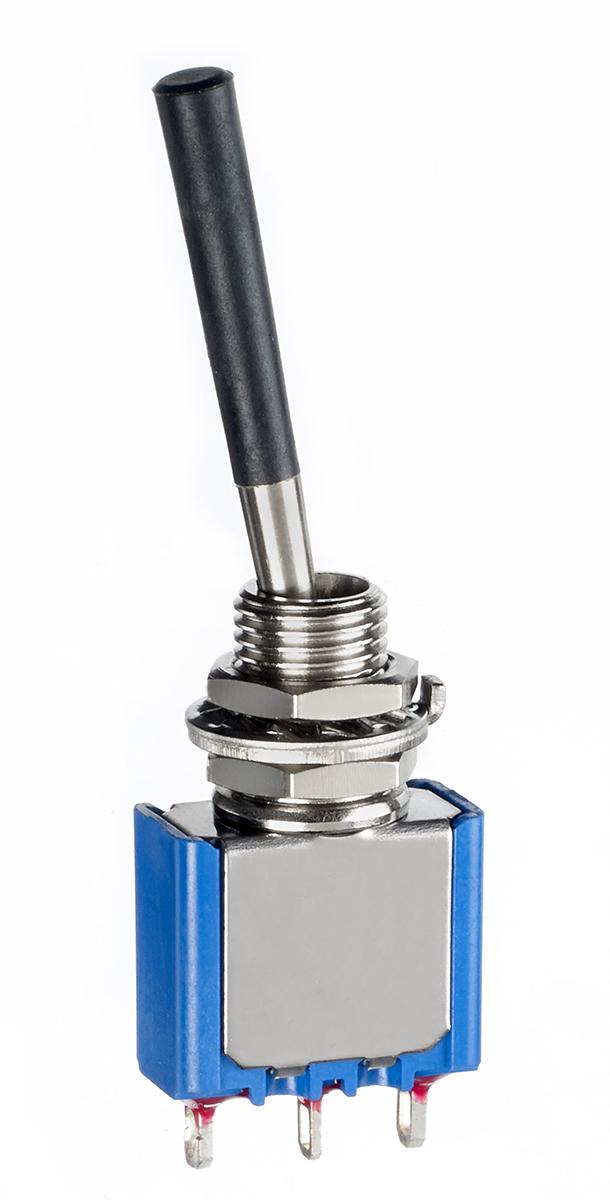 This is Apem SPDT Toggle Switch On-None-Momentary Panel Mount manufactured by APEM. The manufacturer part number is 5632AB-21+U642. It features a 10mω contact resistance. The actuator is a 23.1mm long. The product is available in panel mount configuration. Moreover, the product has a nominal 30 v dc, 125 v ac, 250v ac voltage rating. The actuator is designed from sturdy chrome plated brass material. Whereas, the minimum operating temperature of the product is -40°c. The product is made from sturdy silver materials. It has a maximum operating temperature of +85°c. The terminal is a solder lug type.