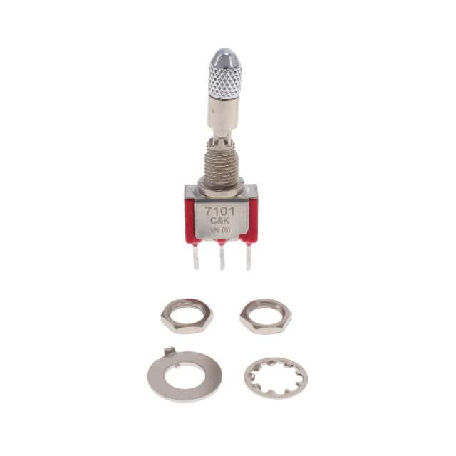 This is manufactured by C&K. The manufacturer part number is 7101K2CREG. It is assigned with possible HTSUS value of 8536.50.9065. The product is rohs compliant. The product offers long-lasting services of 100,000 cycles. Moreover, it has pc pin terminal style. 28 v of DC voltage rating. The product has -30°c ~ 85°c operating temperature range. It also has a circular - 6.35mm dia dimensional features. The actuator is a 17.88mm long. The product exhibits 120 v of AC voltage rating. In addition, it is reach affected. It is shipped in bag. It is designed as a on-on switching function. Its typical moisture sensitivity level is 1 (unlimited). It has an integral spdt circuit. It has a long 16 weeks standard lead time. Additionally, the product's output is 5a (ac/dc) The splendid features of the product include epoxy sealed terminals. The product is available in panel mount configuration. The product 7000, is a highly preferred choice for users. The product has bushing thread of 1/4-40. The product carries locking lever actuator. Is this product illuminated? non-illuminated. The actuator is designed from sturdy brass, chrome plated material. Moreover, it corresponds to 7101k2, a base product number of the product. The product is designated with the ear99 code number