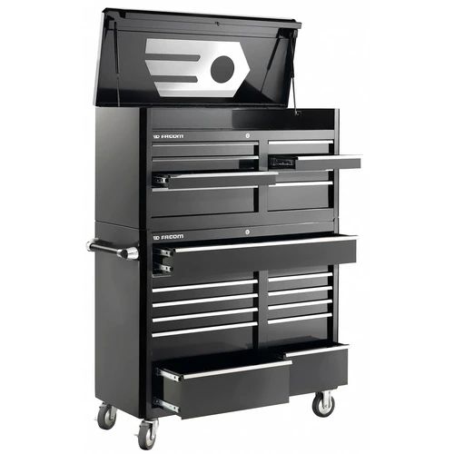 This is 13 drawer WheeledTool Chest 1.042m x 500mm x 1.166m manufactured by Facom. The manufacturer part number is FAS.13BK. The typical product's weight is 135kg. In addition, the height is 1.042m. Furthermore, the product is 500mm wide. Its accurate length is 1.166m.