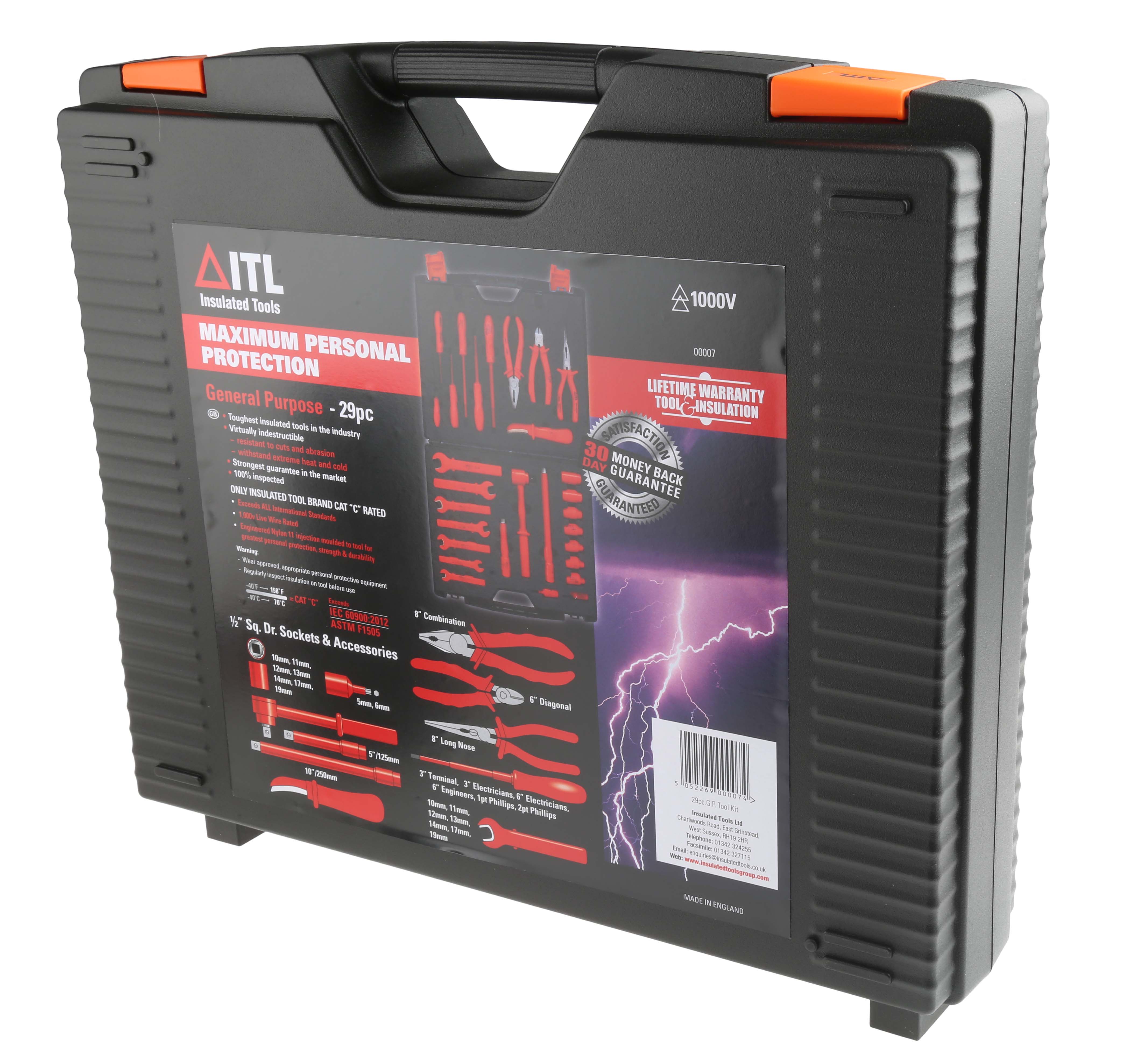 This is 29 Piece Engineers Tool Kit with Case VDE Approved manufactured by ITL Insulated Tools Ltd. The manufacturer part number is RS_911-1547.