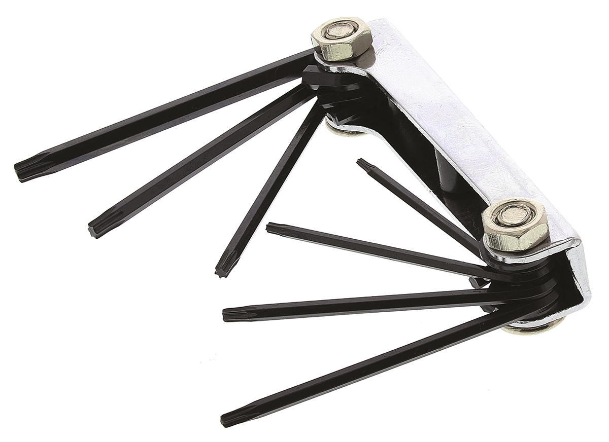This is 7 piece Folding Torx key set Chrome Vanadium Steel manufactured by RS Pro. The manufacturer part number is 450-0037. A quality product with a nice gunmetal finish. The product is made from highly stable and reliable chrome vanadium steel.
