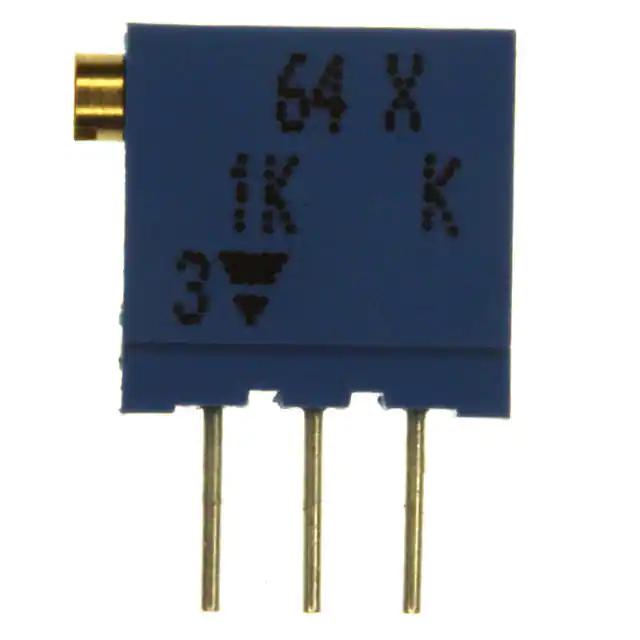 This is manufactured by Vishay Spectrol. The manufacturer part number is M64X102KB40. It is assigned with possible HTSUS value of 8533.40.8050. The product is rohs3 compliant. Moreover, it has pc pins terminal style. It exhibits an excellent temperature coefficient of ±100ppm/°c. The product features power and watts of 0.5w, 1/2w. It has adjustment flexibility and is adjusted at a side adjustment. It features ±10% of tolerance value. Consist of 21 turns. The product is equipped with a cermet resistive material. It is shipped in bulk. The product's diameters include rectangular - 0.382" x 0.197" face (9.70mm x 5.00mm). It has a long 12 weeks standard lead time. Its typical moisture sensitivity level is not applicable. The product is available in through hole configuration. The product 64, is a highly preferred choice for users. It carries 1 kohms resistance. The product is designated with the ear99 code number