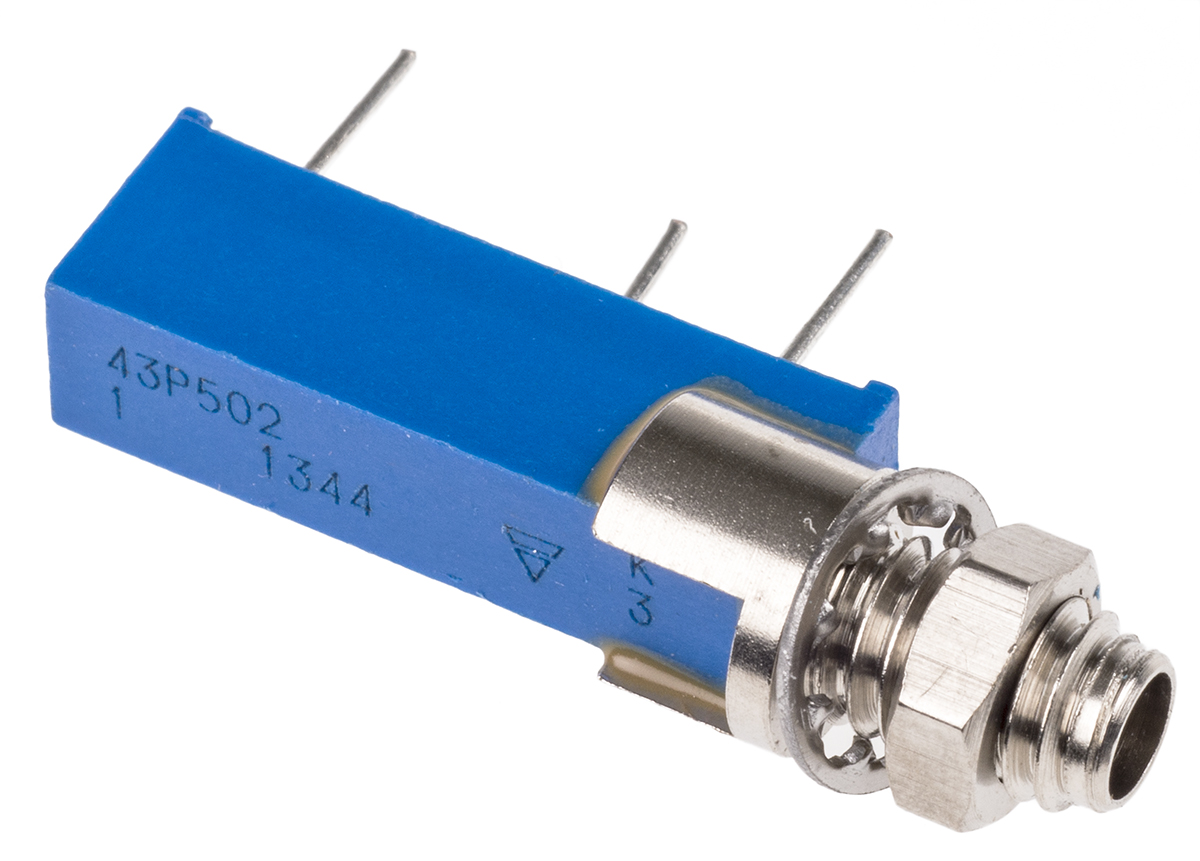 This is 43P Series 20-Turn Panel Mount Through Hole Trimmer Resistor with Pin Terminations 5kΩ ±10% 1/2W ±100ppm/°C manufactured by Vishay. The manufacturer part number is M43P502KB30T601. The product has a side adjust orientation. The product is available in panel mount, through hole configuration. The product 43p, is a highly preferred choice for users. Moreover, it has pin terminal style. Consist of 20 turns. It exhibits an excellent temperature coefficient of ±100ppm/°c. Its accurate length is 27.81mm. Whereas, the minimum operating temperature of the product is -55°c. It features ±10% of tolerance value. It has a maximum operating temperature of +125°c.