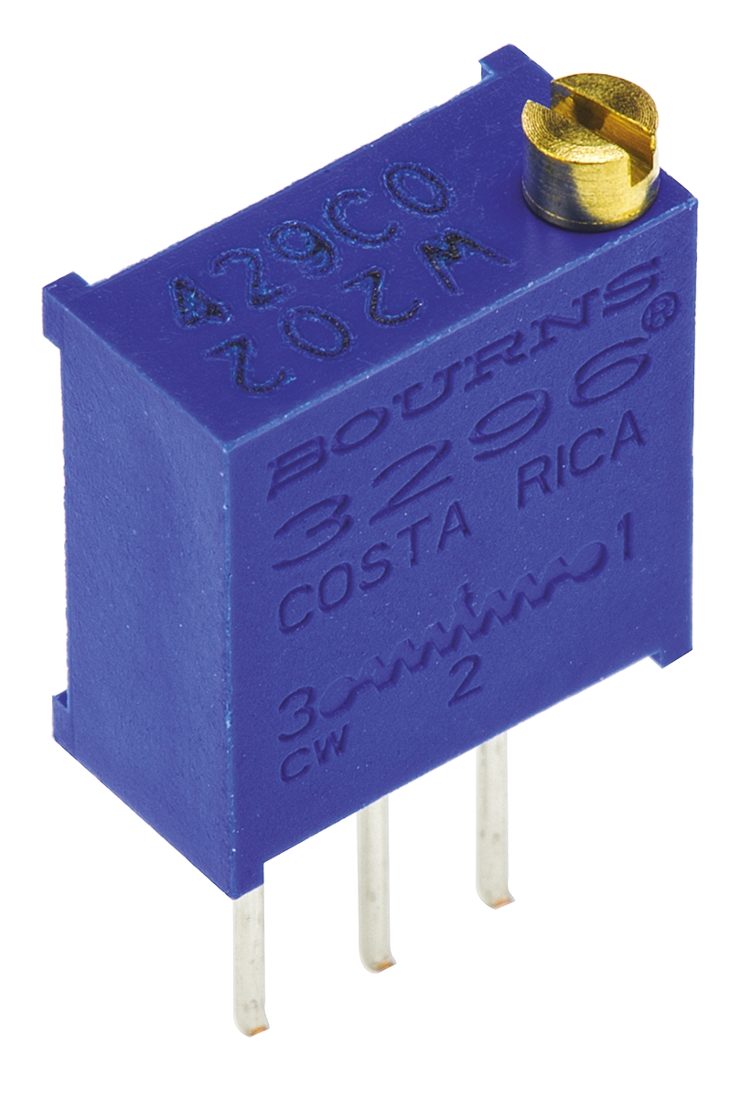 This is 3296W Series 25-Turn Through Hole Trimmer Resistor with Pin Terminations 2kΩ ±10% 1/2W ±100ppm/°C Top Adjust manufactured by Bourns. The manufacturer part number is 3296W-1-202LF. The product has a top adjust orientation. The product is available in through hole configuration. The product 3296, is a highly preferred choice for users. Moreover, it has pin terminal style. Consist of 25 turns. It exhibits an excellent temperature coefficient of ±100ppm/°c. Its accurate length is 9.53mm. Whereas, the minimum operating temperature of the product is -55°c. It features ±10% of tolerance value. It has a maximum operating temperature of +125°c.