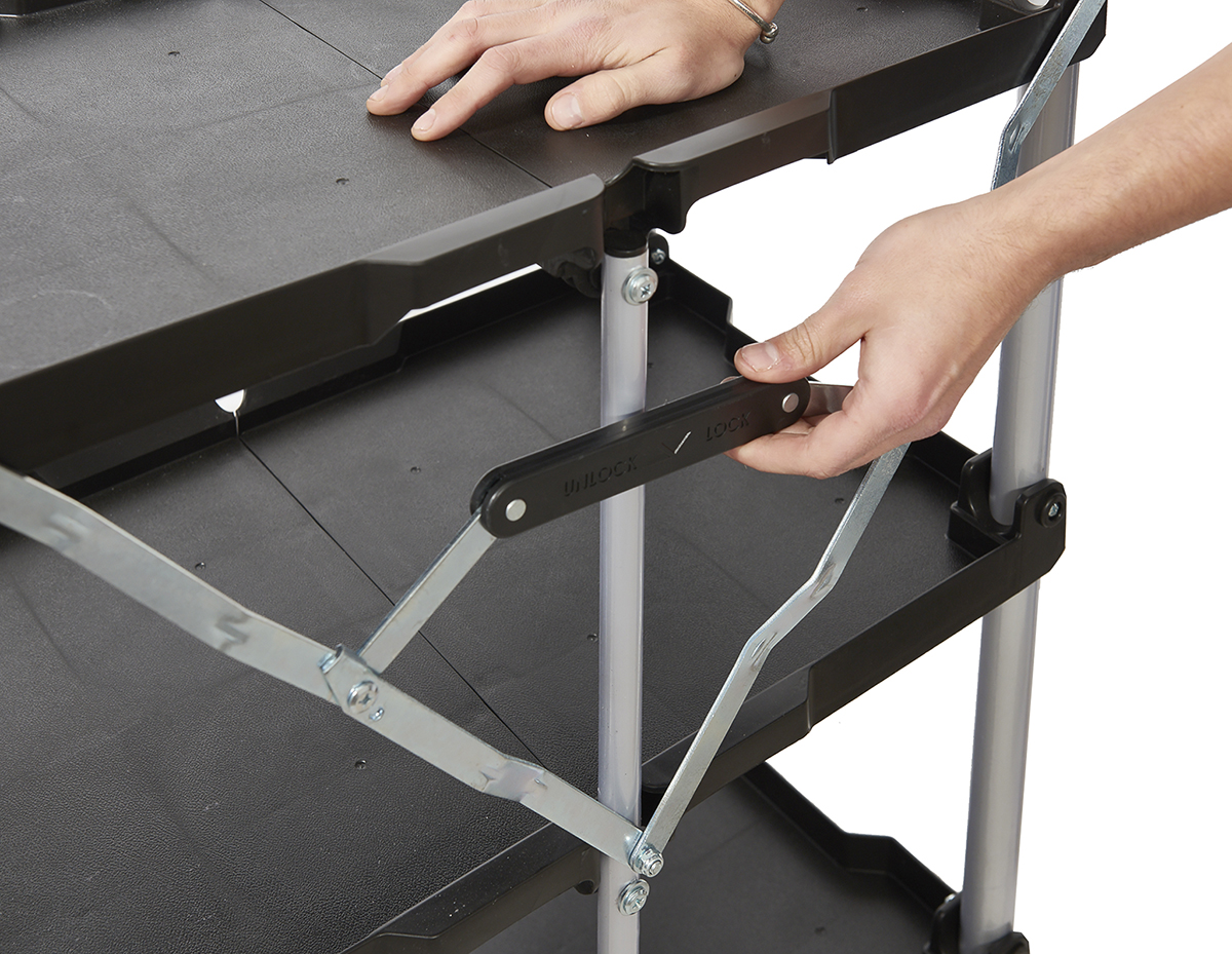This is 3 Level Aluminium Folding Trolley 670 x 430mm manufactured by RS Pro. The manufacturer part number is 103-8687. The product carries 3 levels. It comes in folding configuration.
