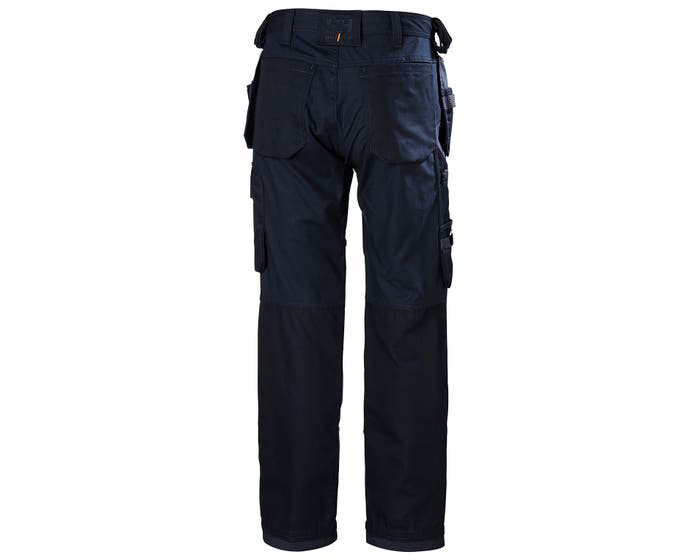 The Helly Hansen Oxford series Construction pant provides durability without compromising on comfort. 2-way stretch in critical areas makes sure the wearer has freedom of movement while the reinforced fabric at the knees and bottom hem protects the wearer and the pants from daily wear and tear. With sturdy double lined hanging pockets this is a perfect choice for the tradesmen in need of a reliable pant at work. Hand pockets Broad centre back belt loop for extra stability and strength Back pockets Gusset in crotch for freedom of movement