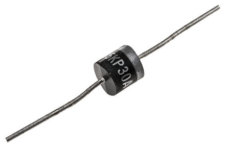 This is Uni-Directional TVS Diode 5000W 2-Pin P600 manufactured by Vishay. The manufacturer part number is 5KP30A-E3/54. Its diameter is 9.1mm. The given dimensions of the product include 9.1 (dia.) x 9.1mm. The product is available in through hole configuration. It has a maximum operating temperature of +175 °c. Its accurate length is 9.1mm. Whereas, the minimum operating temperature of the product is -55 °c. The diode features a single configuration.