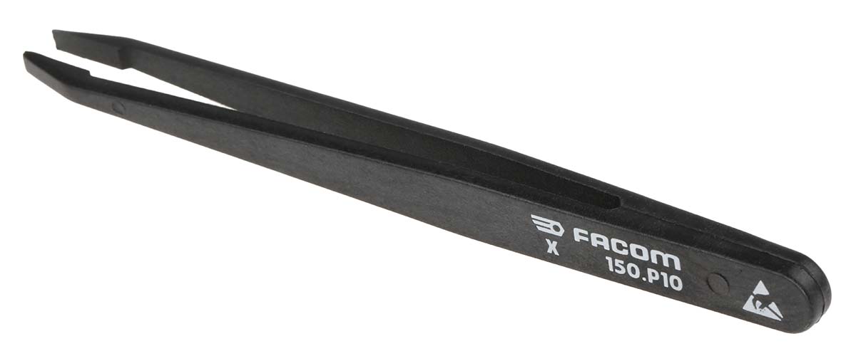 This is 120 mm Anti-Magnetic Plastic Straight Tweezers Anti-Acid manufactured by Facom. The manufacturer part number is 150.P10. The product is made from highly stable and reliable plastic. The product has a straight orientation.