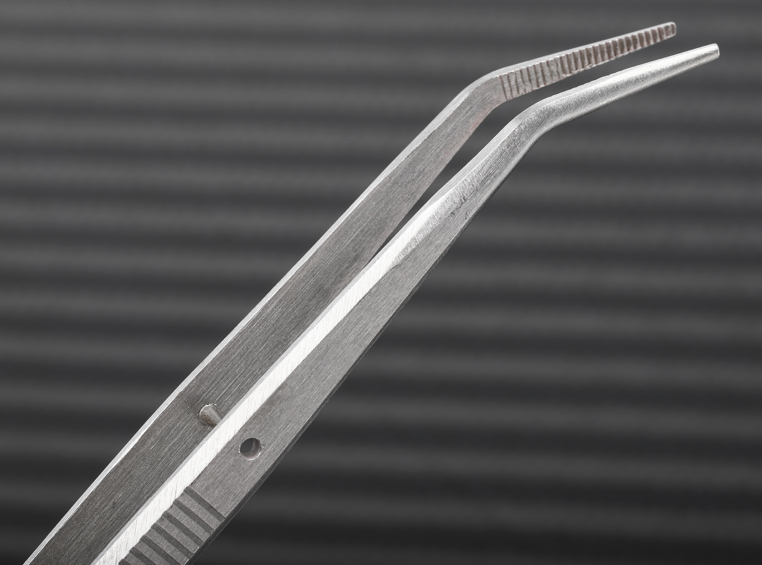 This is 150 mm Stainless Steel Fine; Serrated; Bent Tweezers manufactured by RS Pro. The manufacturer part number is 545-187. The product is made from highly stable and reliable stainless steel. The product has a bent orientation.