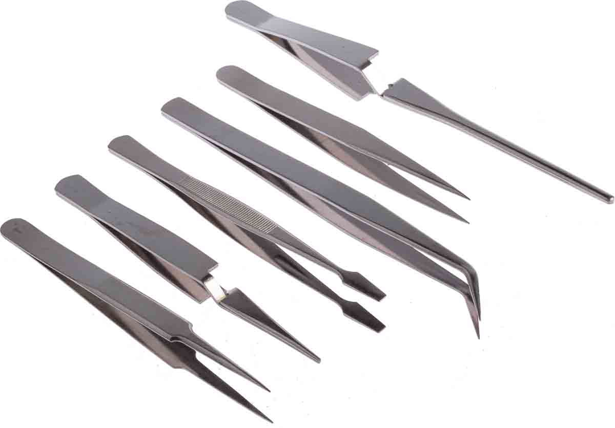 This is 6 piece Nickel Plated Steel Tweezer Set manufactured by RS Pro. The manufacturer part number is 618-8386. The product is made from highly stable and reliable nickel plated steel.