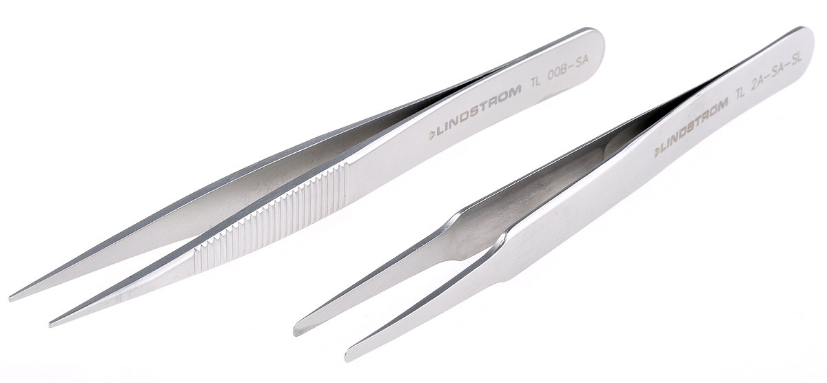 This is 2 piece Stainless Steel Tweezer Set Yes manufactured by Lindstrom. The manufacturer part number is 9859. The product is made from highly stable and reliable stainless steel.