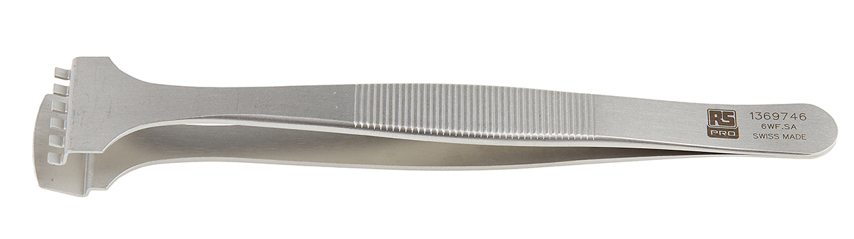 This is 130 mm Anti-Magnetic Stainless Steel Bent Anti-Acid Tweezers manufactured by RS Pro. The manufacturer part number is 136-9746. The product has a bent orientation. The product is made from highly stable and reliable stainless steel.