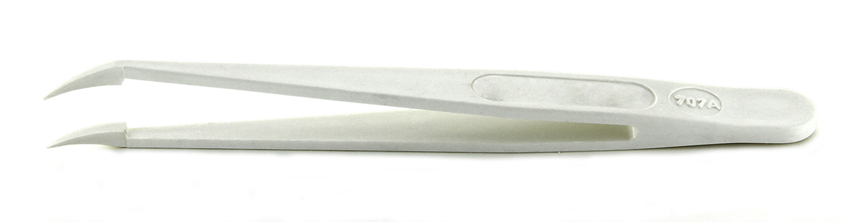 This is 115 mm Delrin Plastic Curved Fine Tweezers manufactured by RS Pro. The manufacturer part number is 136-9865. The product is made from highly stable and reliable delrin plastic. The product has a curved orientation.