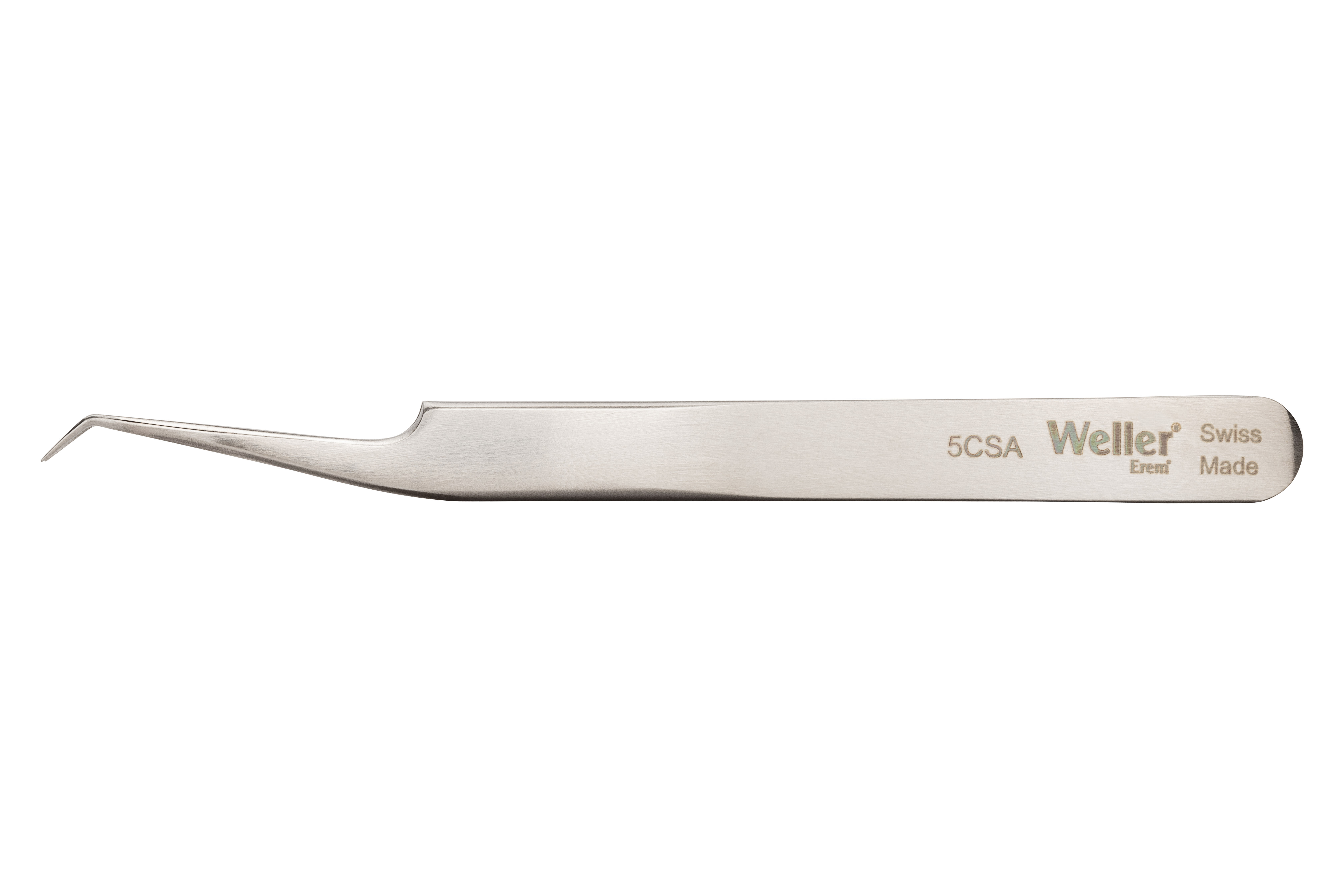 This is 115 mm Anti-Magnetic Stainless Steel Curved Anti-Acid Tweezers manufactured by Erem. The manufacturer part number is 5CSA. The product has a curved orientation. The product is made from highly stable and reliable stainless steel.