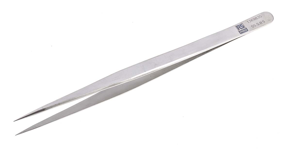 This is 140 mm Stainless Steel Extra Fine Tweezers manufactured by RS Pro. The manufacturer part number is 136-9835. The product is made from highly stable and reliable stainless steel.