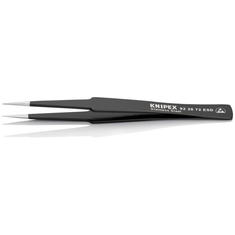 This is PRÄZISIONS-PINZETTE ESD manufactured by Knipex. The manufacturer part number is 92 28 72 ESD. The product has a straight orientation. The product is made from highly stable and reliable stainless steel.