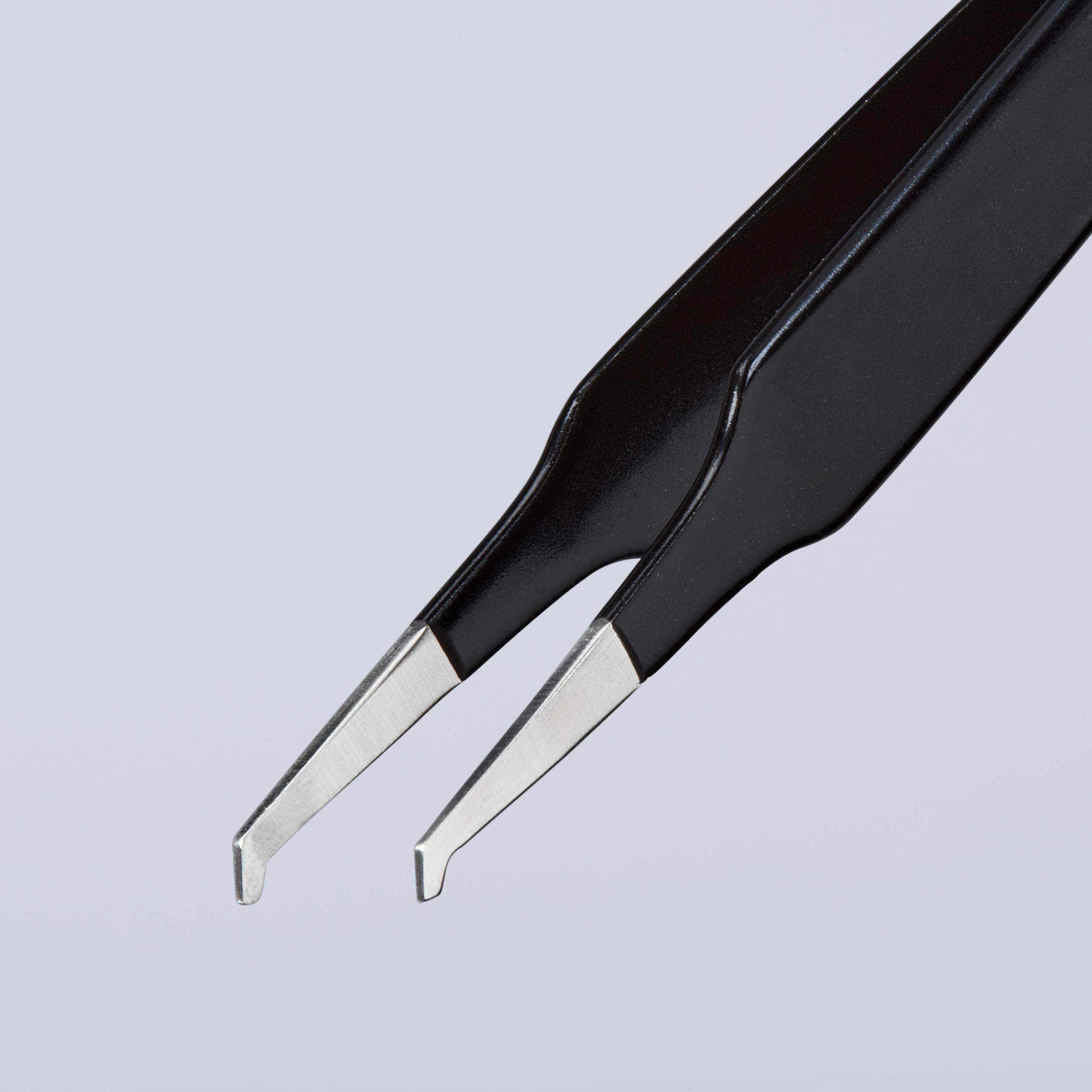 This is PRÄZISIONS-PINZETTE ESD manufactured by Knipex. The manufacturer part number is 92 08 78 ESD. The product has a angled orientation. The product is made from highly stable and reliable stainless steel.