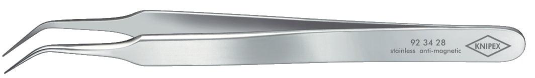 This is PRÄZISIONS-PINZETTE NADELSPITZE FORM manufactured by Knipex. The manufacturer part number is 92 34 28. The product has a angled orientation. The product is made from highly stable and reliable stainless steel.