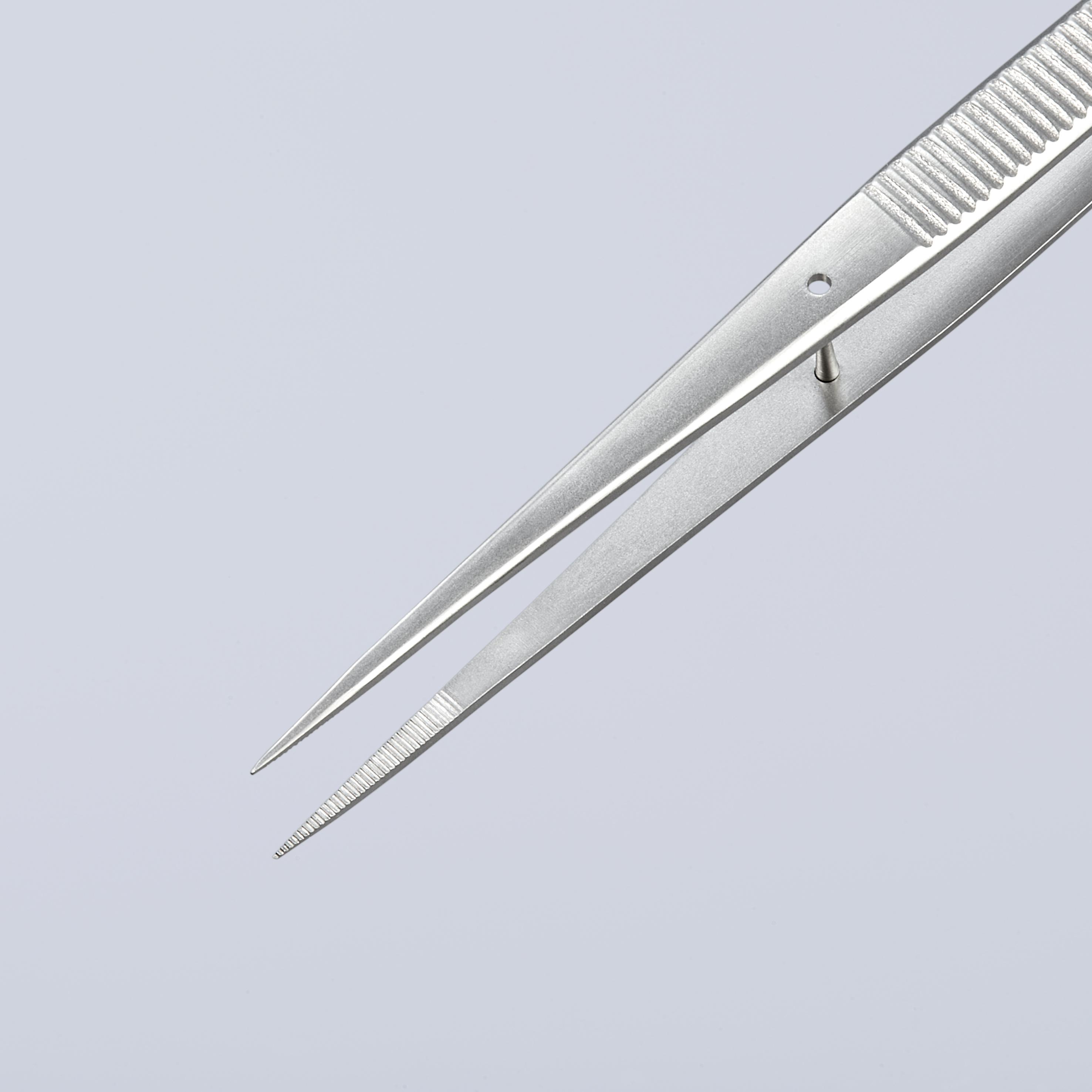 This is 155 mm Anti-Magnetic Stainless Steel Anti-Acid Tweezers manufactured by Knipex. The manufacturer part number is 92 22 35. The product has a straight orientation. The product is made from highly stable and reliable stainless steel.