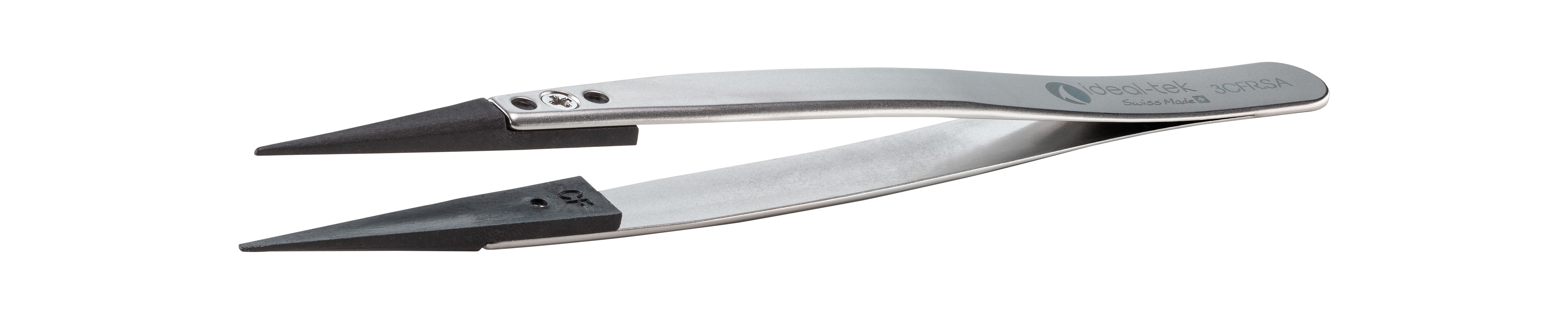 This is 130 mm PA66/CF30 (Tip) Stainless Steel (Body) Fine ESD Tweezers manufactured by ideal-tek. The manufacturer part number is 3CFR.SA.1. The product is made from highly stable and reliable pa66/cf30 (tip), stainless steel (body).