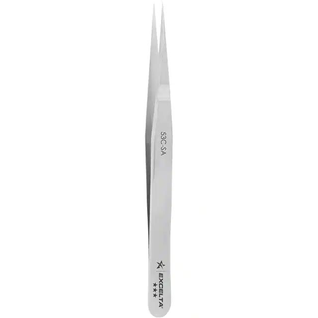 This is manufactured by Excelta Corporation. The manufacturer part number is 53C-SA. It is assigned with possible HTSUS value of 8203.20.2000. The product is not applicable. The built-in exquisite tip is a very fine tip. The product has an integral 4.25" (108.0mm) overall length. The product is made from highly stable and reliable stainless steel. It is shipped in box. Its typical moisture sensitivity level is not applicable. It has a long 1 weeks standard lead time. The splendid features of the product include anti-magnetic. The product is designated with the ear99 code number