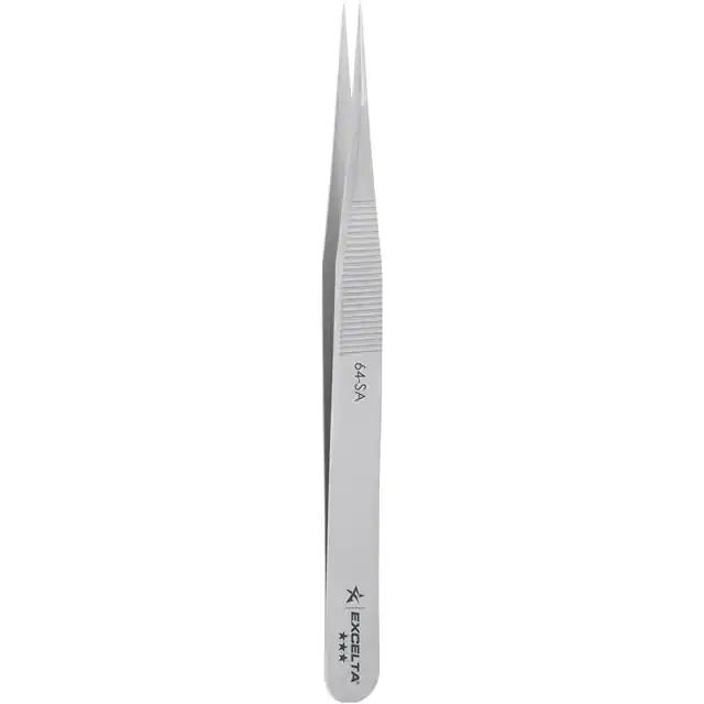 This is manufactured by Excelta Corporation. The manufacturer part number is 64-SA. It is assigned with possible HTSUS value of 8203.20.2000. The product is not applicable. The built-in exquisite tip is a fine tip. The product has an integral 4.75" (120.7mm) overall length. The product is made from highly stable and reliable stainless steel. It is shipped in box. Its typical moisture sensitivity level is not applicable. It has a long 1 weeks standard lead time. The splendid features of the product include anti-magnetic, serrated. The product is designated with the ear99 code number