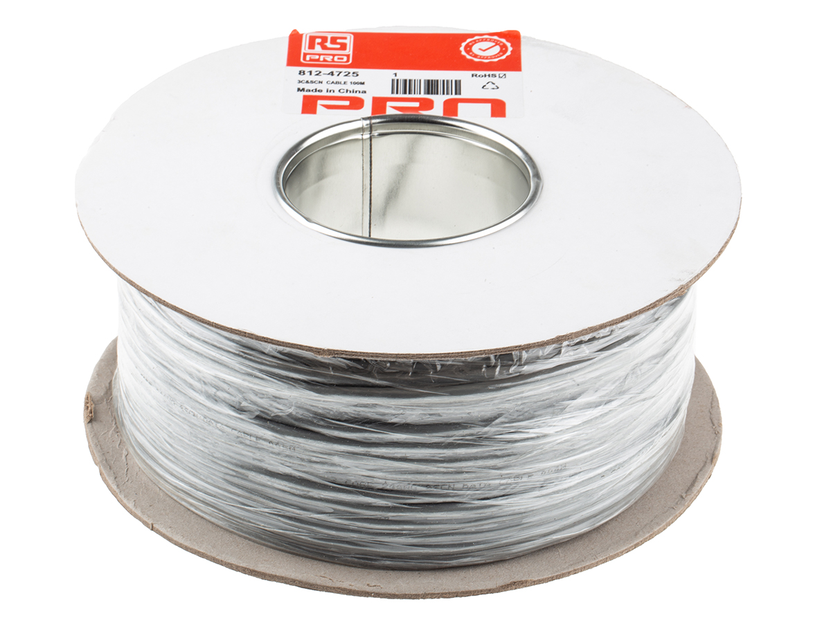 This is 3 Core Industrial Cable 0.22 mm² CSA Screened Grey PVC Sheath 100m Reel manufactured by RS Pro. The manufacturer part number is 812-4725. Whereas, the minimum operating temperature of the product is -20°c. Moreover, the product has a nominal 300 v voltage rating. It has a maximum operating temperature of +60°c. The item is shielded with a foil. Its accurate length is 100m.