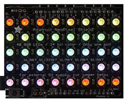 This is Adafruit NeoPixel 40 RGBW Natural White LED Matrix Shield for Arduino manufactured by ADAFRUIT INDUSTRIES. The manufacturer part number is 2865.