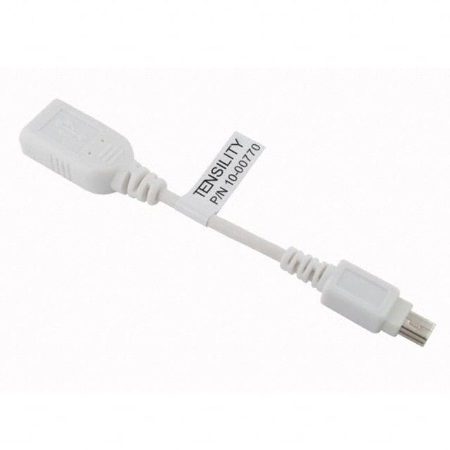 This is manufactured by Tensility International Corp. The manufacturer part number is 10-00770. It is assigned with possible HTSUS value of 8544.42.2000. The product is rohs3 compliant. Furthermore, the product is shielded with shielded. Specifications include usb 2.0. In addition, it is reach unaffected. The product is available in a female to mini b male configuration. It is shipped in bulk. Moreover, the product has a wire gauge of 28 awg, 28 awg. Its typical moisture sensitivity level is 1 (unlimited). Its accurate length is 0.33' (100.0mm). It has a long 16 weeks standard lead time. The splendid features of the product include data transfer and charge. It has a classic white colour. The product is designated with the ear99 code number