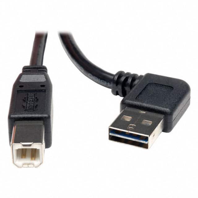 This is manufactured by Tripp Lite. The manufacturer part number is UR022-003-RA. It is assigned with possible HTSUS value of 8544.42.2000. The product is rohs compliant. Furthermore, the product is shielded with shielded. Specifications include usb 2.0. The product is available in a male, right angle to b male configuration. It is shipped in bulk. Moreover, the product has a wire gauge of 24 awg, 28 awg. Its typical moisture sensitivity level is not applicable. Its accurate length is 3.00' (914.4mm). It has a long 2 weeks standard lead time. The splendid features of the product include data transfer and charge, reversible. It has a classic black colour. The product is designated with the ear99 code number