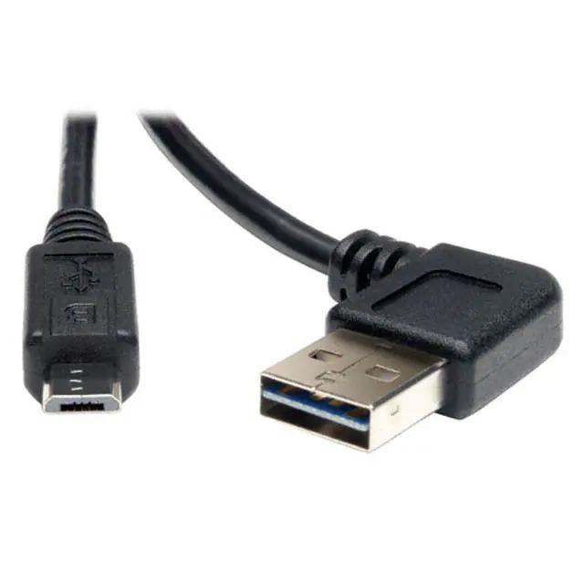 This is manufactured by Tripp Lite. The manufacturer part number is UR050-003-RA. It is assigned with possible HTSUS value of 8544.42.2000. The product is rohs compliant. Specifications include usb 2.0. The product is available in a male, right angle to micro b male configuration. It is shipped in bulk. Moreover, the product has a wire gauge of 28 awg, 28 awg. Its typical moisture sensitivity level is not applicable. Its accurate length is 3.00' (914.4mm). It has a long 2 weeks standard lead time. The splendid features of the product include data transfer and charge, reversible. It has a classic black colour. The product is designated with the ear99 code number