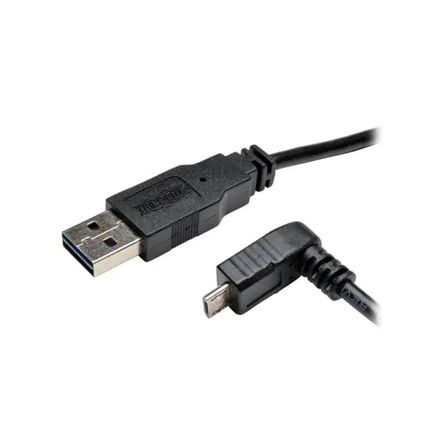 This is manufactured by Tripp Lite. The manufacturer part number is UR050-001-DNB. The splendid features of the product include data transfer and charge, reversible. It is assigned with possible HTSUS value of 8544.42.2000. It is shipped in bulk. It has a classic black colour. Its accurate length is 1.00' (304.8mm). Its typical moisture sensitivity level is not applicable. Specifications include usb 2.0. Moreover, the product has a wire gauge of 28 awg, 28 awg. The product is available in a male to micro b male, down angle configuration. The product is designated with the ear99 code number