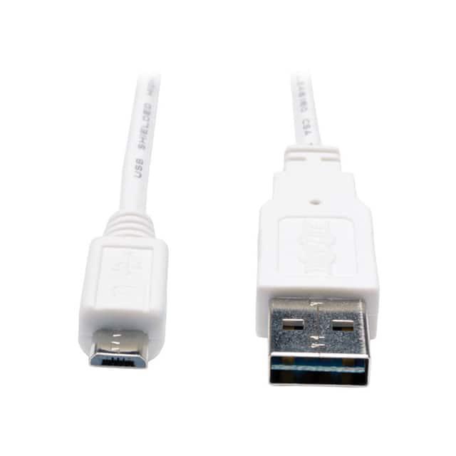 This is manufactured by Tripp Lite. The manufacturer part number is UR050-06N-WH. It is assigned with possible HTSUS value of 8544.42.2000. The product is rohs compliant. Specifications include usb 2.0. The product is available in a male to micro b male configuration. It is shipped in bulk. Moreover, the product has a wire gauge of 28 awg, 28 awg. Its typical moisture sensitivity level is not applicable. Its accurate length is 0.50' (152.4mm). The splendid features of the product include data transfer and charge, reversible. It has a classic white colour. The product is designated with the ear99 code number
