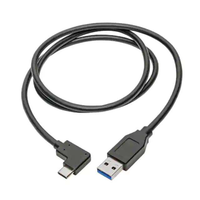 This is manufactured by Tripp Lite. The manufacturer part number is U428-003-CRA. It is assigned with possible HTSUS value of 8544.42.2000. The product is rohs compliant. Furthermore, the product is shielded with unshielded. Specifications include usb 3.2 gen 2 (usb 3.1 gen 2, superspeed+ (usb 3.1)). The product is available in a male to c male, right angle configuration. It is shipped in bulk. Moreover, the product has a wire gauge of 24 awg, 30 awg. Its typical moisture sensitivity level is not applicable. Its accurate length is 3.00' (914.4mm). It has a long 2 weeks standard lead time. The splendid features of the product include data transfer and charge, reversible. It has a classic black colour. The product is designated with the ear99 code number