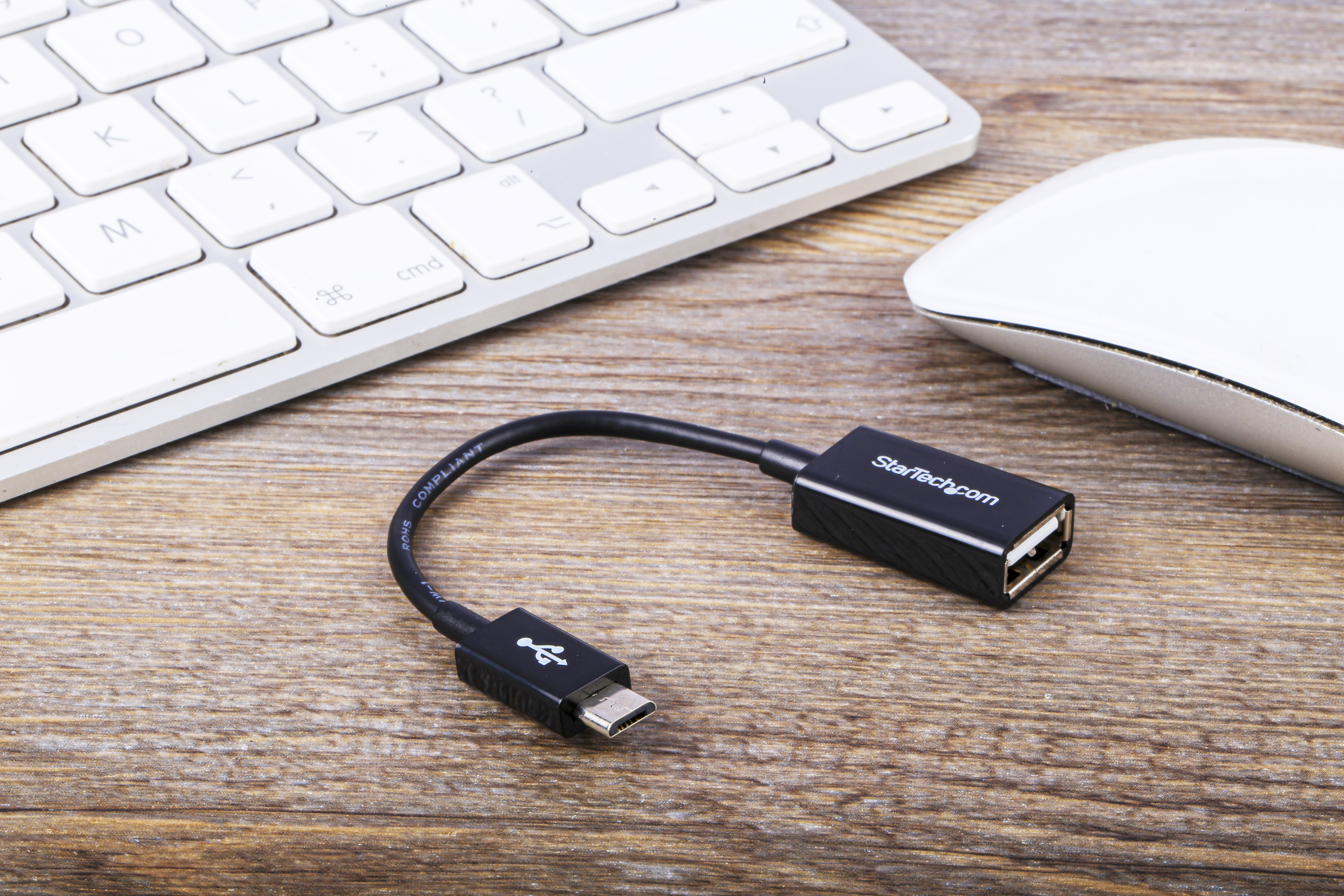 This is Male USB Micro B to Female USB A Adapter 127mm USB A USB Micro B manufactured by StarTech.com. The manufacturer part number is UUSBOTG. Its accurate length is 130mm. The product is made from sturdy nickle materials.