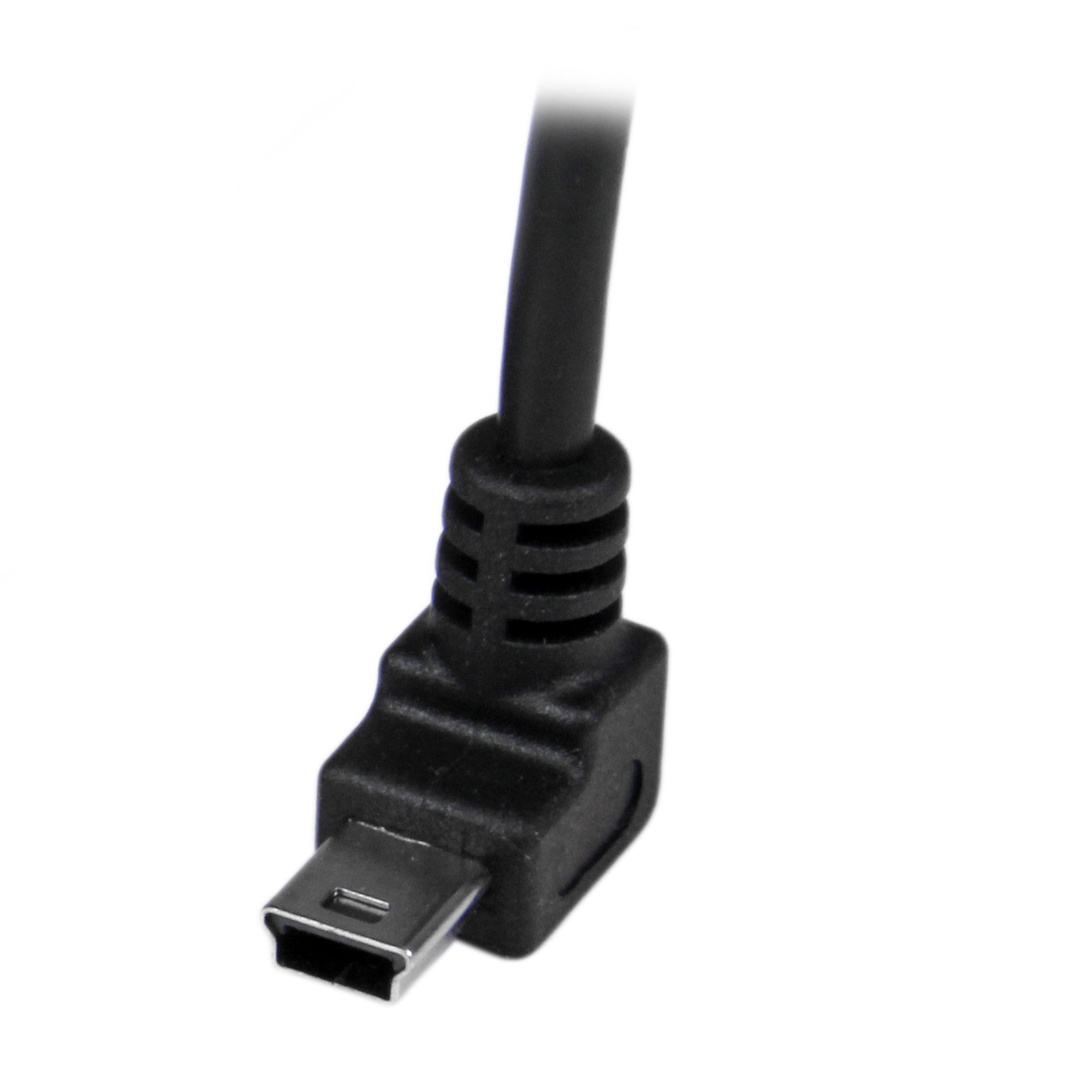 This is Startech Male USB A to Angled Male USB Mini B USB Cable 1m USB 2.0 manufactured by StarTech.com. The manufacturer part number is USBAMB1MU. Its accurate length is 1m.