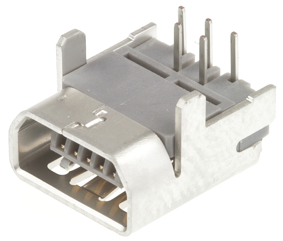 This is On-The-Go Series 56579 Series Number Right Angle Through Hole Mount Version 2.0 Type AB Mini USB Connector manufactured by Molex. The manufacturer part number is 56579-0519. The product has a current rating of 1.0a. The product is available in through hole configuration. Moreover, the product has a nominal 30.0 v voltage rating. In addition, female is the available "Gender" of the product. Whereas, the minimum operating temperature of the product is 0.0°c. The product on-the-go, is a highly preferred choice for users. The product is made from sturdy copper alloy materials. It has a maximum operating temperature of +50°c.