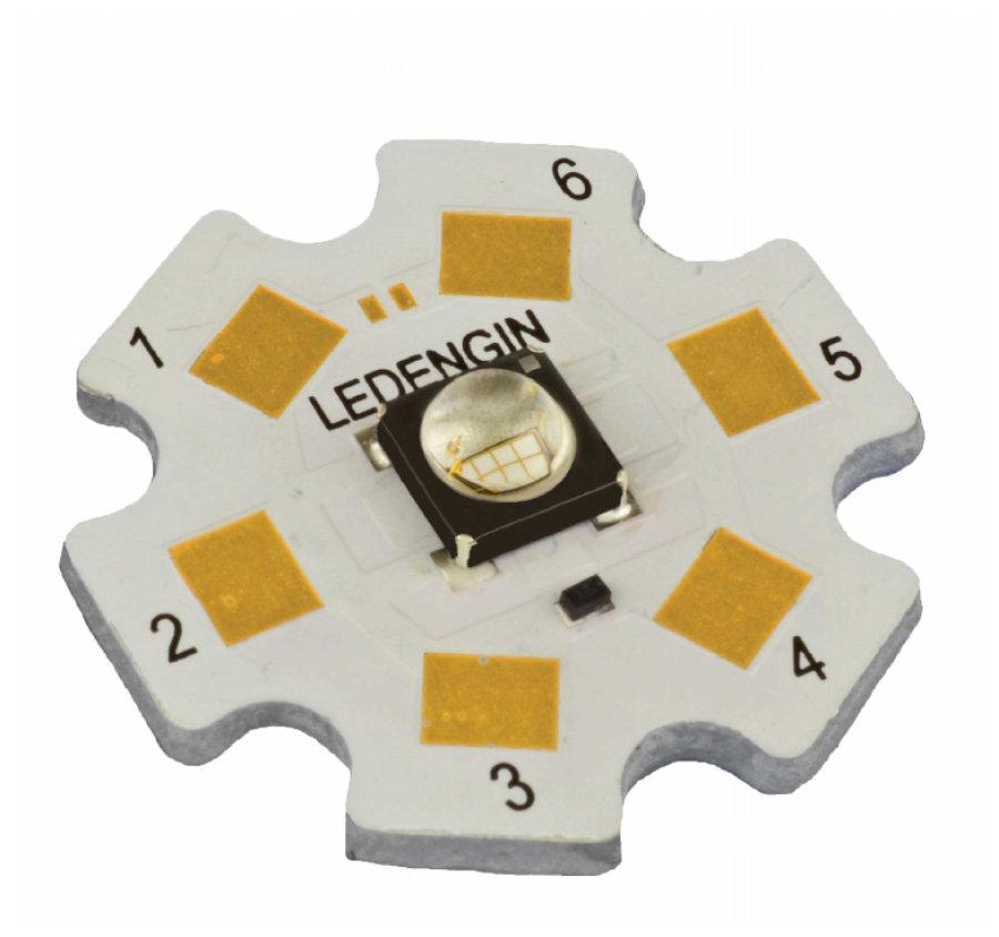 This is UV LED 1760mW manufactured by ams OSRAM. The manufacturer part number is LZ1-10UV0R-0000.