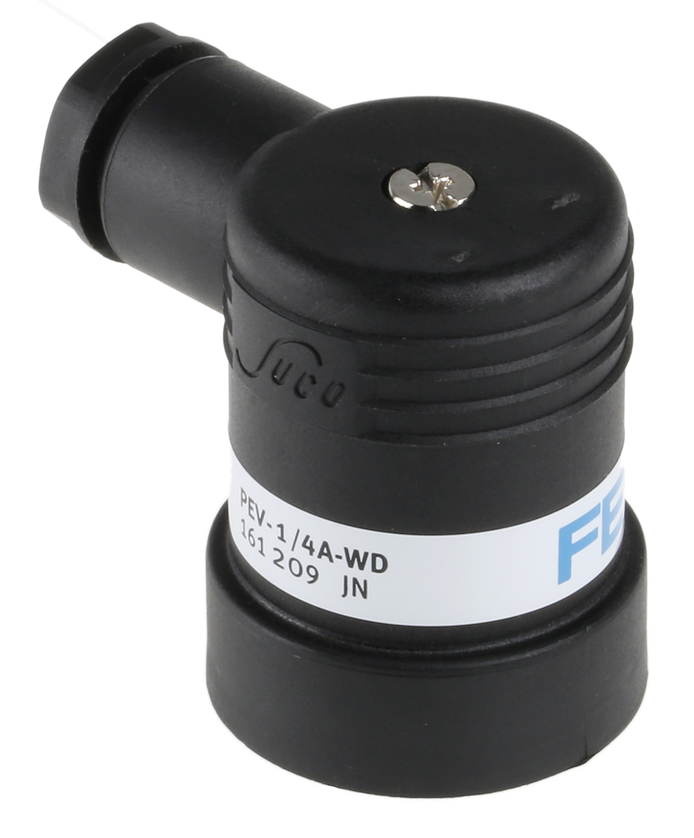 This is Pressure Switch manufactured by Festo. The manufacturer part number is PEV-1/4-A-WD. It has a maximum operating temperature of +90°c. It comes in plug socket configuration. Whereas, the minimum operating temperature of the product is -40°c.