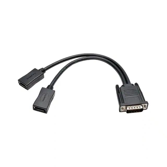 This is manufactured by Tripp Lite. The manufacturer part number is P576-001-DP. The second integral connector has a free hanging (in-line) mounting configuration. It is assigned with possible HTSUS value of 8544.42.9090. The product is rohs non-compliant. The product's typical Applications include uses in multi media. The second connector is the displayport female (2). It is shipped in bulk. Its typical moisture sensitivity level is not applicable. Its accurate length is 1.00' (304.80mm). dms-59 male is the first connector. It has a classic black colour. It is a typical round cable. The first connector is configured with a free hanging (in-line), mating hardware mounting type. Moreover, it corresponds to p576-001, a base product number of the product. The product is designated with the ear99 code number