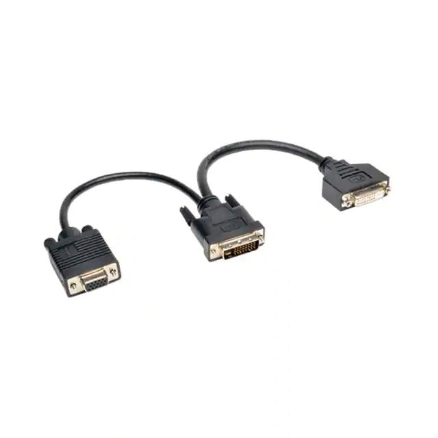 This is manufactured by Tripp Lite. The manufacturer part number is P564-06N-DV. The second integral connector has a free hanging (in-line), mating hardware mounting configuration. It is assigned with possible HTSUS value of 8544.42.9090. The product is rohs non-compliant. Furthermore, the product is shielded with unshielded. The second connector is the dvi-d dual link female and d-sub 15pos female, high density (hd). It is shipped in bulk. Its typical moisture sensitivity level is not applicable. Its accurate length is 0.500' (152.40mm, 6.00"). It has a long 2 weeks standard lead time. dvi-i dual link, male is the first connector. It has a classic black colour. It is a typical round cable. The first connector is configured with a free hanging (in-line), mating hardware mounting type. Moreover, it corresponds to p564-061, a base product number of the product. The product is designated with the ear99 code number