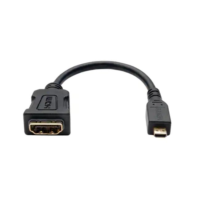 This is manufactured by Tripp Lite. The manufacturer part number is P142-06N-MICRO. The second integral connector has a free hanging (in-line) mounting configuration. It is assigned with possible HTSUS value of 8544.42.9090. The product is rohs compliant. The product's typical Applications include uses in high definition multimedia interface. Furthermore, the product is shielded with shielded. The second connector is the micro hdmi-d male. It is shipped in bulk. Its typical moisture sensitivity level is not applicable. Its accurate length is 0.500' (152.40mm, 6.00"). It has a long 2 weeks standard lead time. hdmi-a female is the first connector. It has a classic black colour. It is a typical round cable. The first connector is configured with a free hanging (in-line) mounting type. The product is designated with the ear99 code number