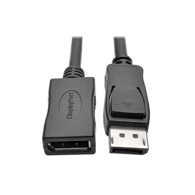 This is manufactured by Tripp Lite. The manufacturer part number is P579-003. The second integral connector has a free hanging (in-line) mounting configuration. It is assigned with possible HTSUS value of 8544.42.9090. The product's typical Applications include uses in multi media. Furthermore, the product is shielded with shielded. The second connector is the displayport female. It is shipped in bulk. Its typical moisture sensitivity level is not applicable. Its accurate length is 3.00' (914.40mm). It has a long 2 weeks standard lead time. displayport male is the first connector. It has a classic black colour. It is a typical round cable. The first connector is configured with a free hanging (in-line), latches mounting type. The product is designated with the ear99 code number