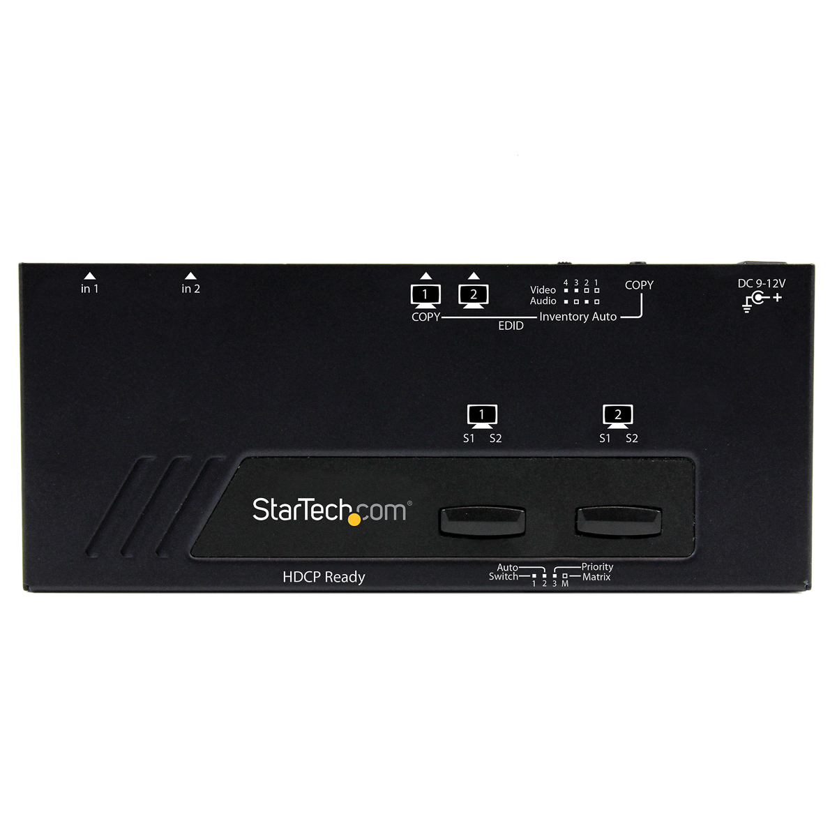 This is Startech 2 Port 2 x 2 HDMI Matrix Switch 1920 x 1200 manufactured by StarTech.com. The manufacturer part number is VS222HDQ. The given dimensions of the product include 157 x 65 x 20mm. The typical product's weight is 290g. This product features 2 number of ports. In addition, the height is 20mm. Furthermore, the product is 157mm wide. The product comes in 65mm depth.