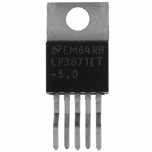 This is manufactured by Texas Instruments. The manufacturer part number is LP3871ET-5.0/NOPB. It is assigned with possible HTSUS value of 8542.39.0001. The product is rohs3 compliant. The product's maximum voltage dropout is 0.35v @ 800ma. The product has -40°c ~ 125°c operating temperature range. Moreover, the product comes in [Package/ Case]. It provides robust protection features, such as over current, over temperature, short circuit. The minimum or fixed output voltage include 5v. Equipped with [Number of Regulator] regulator(s). In addition, it is reach unaffected. Furthermore, it has afixed output. While, the output current includes 800ma. Moreover, the Maximum Current Supply of the product is 15 ma Its maximum input voltage is 7v. Possible control features include enable. Current - Quiescent of 5 ma. It is shipped in tube. Its typical moisture sensitivity level is 1 (unlimited). The product is available in through hole configuration. Additionally, 73db ~ 57db (120hz) is the given PSSR of the product. to-220-5 is the supplier device package value. It boasts positive output configuration. Moreover, it corresponds to lp3871, a base product number of the product. The product is designated with the ear99 code number